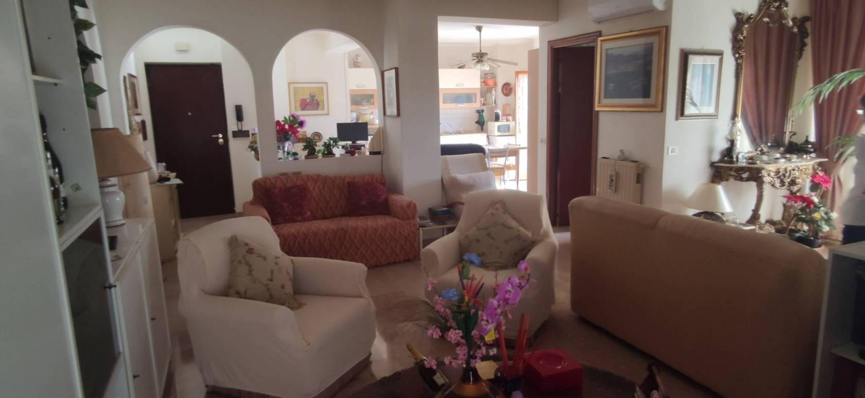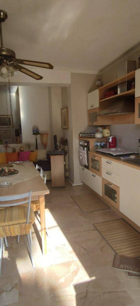 Appartamento in discrete condizioni abitative posto al primo piano e composto da: ingresso, ampio salone con cucina abitabile, 2 camere da letto, 2 bagni, 2 balconi. Box auto dotato di acqua e gas al piano terra. Vista panoramica. Prezzo ottimo