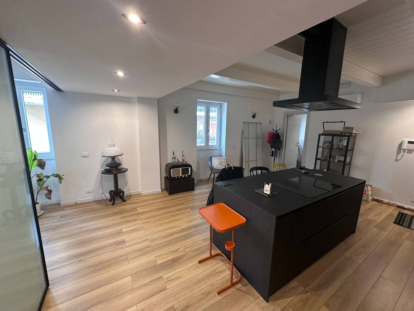 L'ingresso introduce in un ambiente cucina con zona pranzo finemente attrezzato, comunicante con un salottino raccolto e luminoso, mentre la camera da letto matrimoniale, il bagno elegantemente rifinito e un ripostiglio-lavanderia completano la disposizione interna. Un balconcino esterno consente un affaccio arioso e soleggiato, valorizzato dall'altezza dei soffitti che accresce la percezione volumetrica degli ambienti.