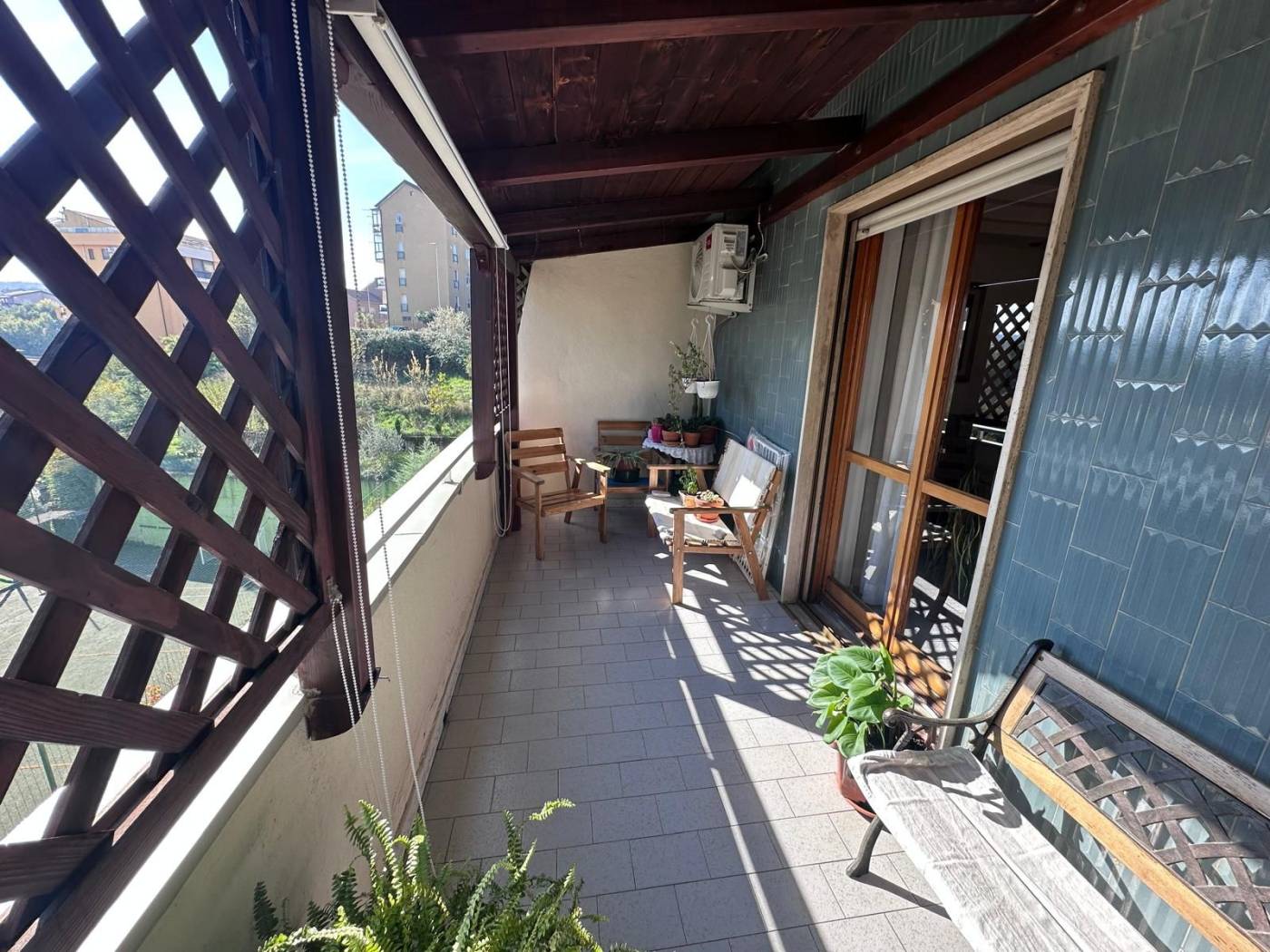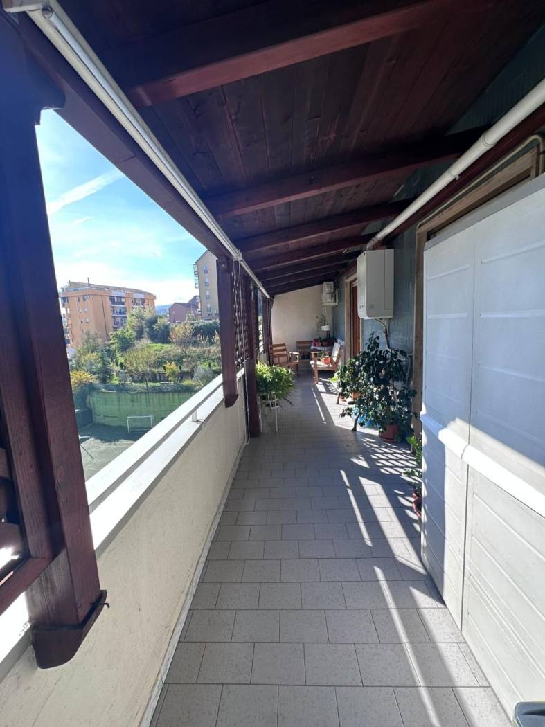Nella zona residenziale di Città 2000, caratterizzata da assetto urbanistico ordinato e dalla presenza immediata di servizi pubblici e commerciali nonché dalle principali direttrici viarie, si colloca un appartamento posto al terzo piano di edificio civile, connotato da condizioni manutentive elevate e da una distribuzione interna armoniosa. La superficie abitativa pari a circa cento metri quadrati si integra con un balcone perimetrale di ulteriori venti metri quadrati, reso pienamente fruibile dalla presenza di una tettoia in legno lamellare, e con una soffitta pertinenziale di circa dodici metri quadrati, idonea a funzioni di deposito ordinato.